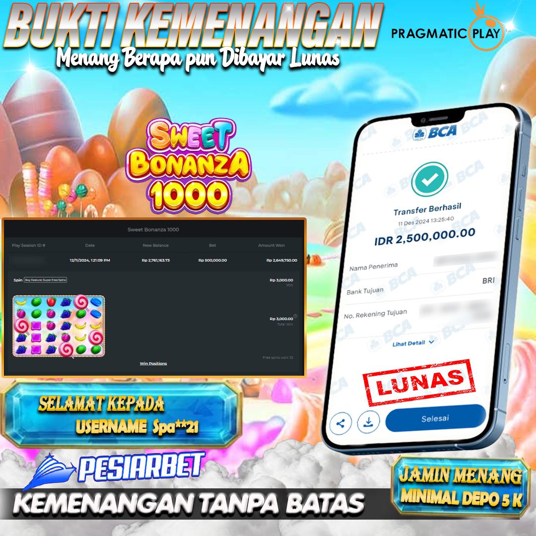 PESIARBET Bukti Kemenangan Slot SWEET BONANZA 1000