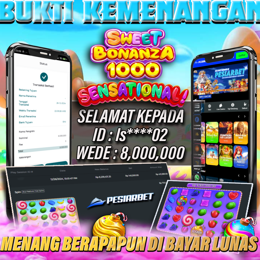 PESIARBET Bukti Kemenangan Slot SWEET BONANZA 1000