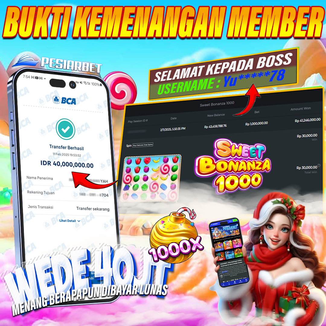 PESIARBET Bukti Kemenangan Slot SWEET BONANZA 1000
