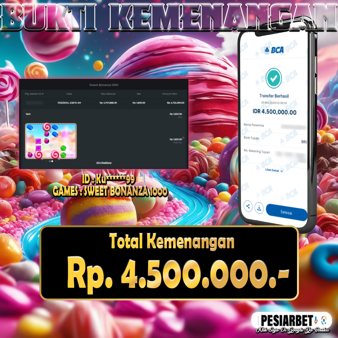 PESIARBET Bukti Kemenangan Slot SWEET BONANZA 1000